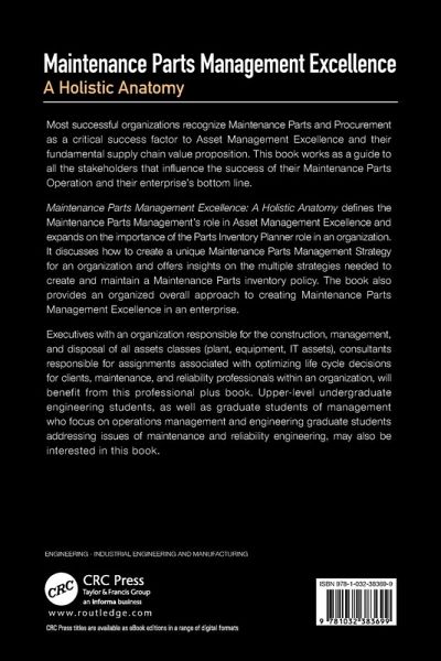 Most successful organizations recognize Maintenance Parts and Procurement as a critical success factor to Asset Management Excellence and their fundamental supply chain value proposition. This book works as a guide to all the stakeholders that influence the success of their Maintenance Parts Operation and their enterprise's bottom line.