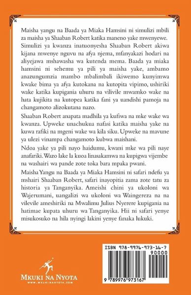 Kwa zaidi ya miaka kumi na tano vitabu vya mwandishi maarufu kushinda wote katika jamii za Waswahili kote Afrika ya Mashariki na Kati, Marehemu Sheikh Shaaban Robert, havikupatikana Tanzania. Sababu ya kukosekana kwa vitabu hivyo ni kuwa kampuni ya kigeni iliyovichapisha iliamua kuacha kuvichapisha kwa sababu haikulipwa kwa fedha za kigeni jambo, lililosabishwa na hali mbaya ya uchumi. Athari za kupotea kwa vitabu vya Sheikh Shaaban Robert katika miaka hiyo ni kwamba Watanzania wengi hasa wale wenye umri chini ya miaka thelathini, hawamjui mwandishi huyu maarufu na hawakulelewa katika mazingira ya utajiri wa maandishi yake ambayo bila shaka yoyote ni mfano pekee wa utajiri wa urithi wa utamaduni wetu. Kwa kuvichapisha vitabu vya Marehemeu Sheikh Shaaban Robert tunawakaribisha tena Watanzania, hasa vijana kuvisoma, kuburudishwa na kufunzwa na yale aliyoyaandika kwa sanaa na kipaji adimu. An autobiographical work in poetry and prose.