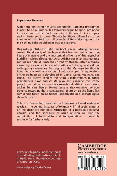 Originally published in 1988, this book is a multidisciplinary and cross-cultural study of the legend that has evolved around the figure of Maitreya, which followers of the Buddha Siddh¿rtha Gautama had agreed would be the future Buddha, and the substantial influence of this legend on Buddhist culture. Arising out of an international conference held at Princeton University, this collection of twelve essays by specialists in textual studies, art history and cultural anthropology examines the origins of the Maitreya tradition in South Asia as well as a variety of culturally specific expressions of the tradition as it developed in China, Korea, Vietnam and Japan. The essays explore the various expectations Buddhist practitioners have had of Maitreya and examine the iconographic and ritualistic symbols associated with this messianic and millenarian figure. Several essays also examine the controversy regarding circumstances under which the figure has sometimes taken on apocalyptic and eschatological characteristics.