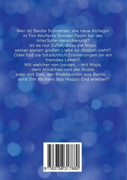 Wer ist Beate Schneider, die neue Kollegin in Tim Wolferts Sonder-Team bei der InterSafe-Versicherung? Ist es nur Zufall, dass sie Maja, seiner ersten großen Liebe so ähnlich sieht? Oder hat sie tatsächlich Erinnerungen an ein fremdes Leben?Mit welcher von beiden, - mit Maja, dem Mädchen von der Küste oder mit Bea, der Praktikantin aus Berlin, - wird Tim Wolters das Happy End erleben?