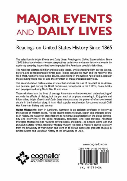 The selections in Major Events and Daily Lives: Readings on United States History Since 1865 introduce students to new perspectives on history and major historical events by exploring everyday issues that have impacted the American people's daily lives. The readings address familiar and relatable topics, while shedding light on the events, culture, and consciousness of times past. Topics include the myth and the reality of the Wild West, women's roles in the 1890s, advertising in the Golden Age of radio, popular music during World War II, and the invention of mass-produced baby food. The second edition features new articles that address the rise of baseball as an American pastime, golf during the Great Depression, xenophobia in the 1920s, comic books and propaganda during World War II, and more. These windows into the lives of average Americans enhance readers' understanding of not only the effects of history, but the part each of us plays in making it. Enjoyable and informative, Major Events and Daily Lives demonstrates the power of often-overlooked details in the historical story. It is an ideal supplemental reader for courses in post-Civil War American history and society.