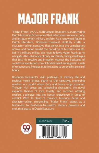 "Major Frank" by A. L. G. Bosboom-Toussaint is a captivating Dutch historical fiction novel that intertwines romance, duty, and intrigue within military society. As a renowned figure in Dutch literature, Bosboom-Toussaint skillfully crafts a character-driven narrative that delves into the complexities of love and honor amidst the backdrop of historical events. Set in a military milieu, the novel follows Major Frank as he navigates the intricacies of duty and family, facing challenges that test his resolve and integrity. Against the backdrop of society's expectations, Frank finds himself…mehr