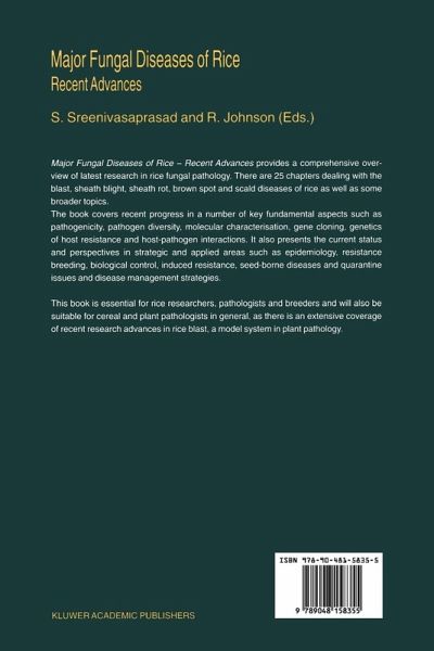 Major Fungal Diseases of Rice: Recent Advances provides a comprehensive overview of latest research in rice fungal pathology. There are 25 chapters dealing with the blast, sheath blight, sheath rot, brown spot and scald diseases of rice as well as some broader topics.