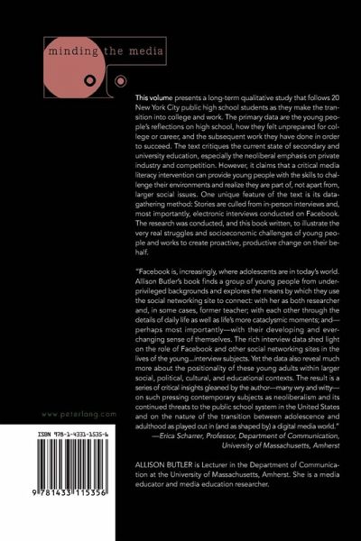 This volume presents a long-term qualitative study that follows 20 New York City public high school students as they make the transition into college and work. The primary data are the young people's reflections on high school, how they felt unprepared for college or career, and the subsequent work they have done in order to succeed. The text critiques the current state of secondary and university education, especially the neoliberal emphasis on private industry and competition. However, it claims that a critical media literacy intervention can provide young people with the skills to challenge their environments and realize they are part of, not apart from, larger social issues. One unique feature of the text is its datagathering method: Stories are culled from in-person interviews and, most importantly, electronic interviews conducted on Facebook. The research was conducted, and this book written, to illustrate the very real struggles and socioeconomic challenges of young peopleand works to create proactive, productive change on their behalf.
