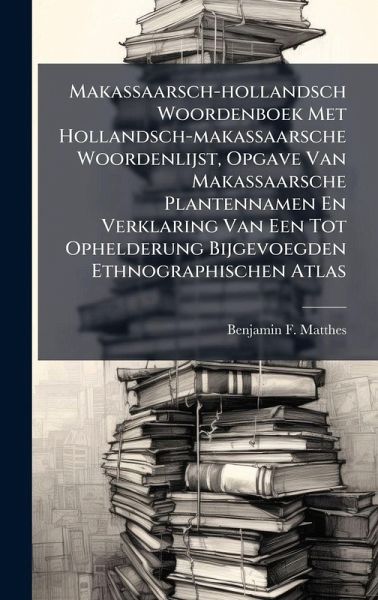 Makassaarsch-hollandsch Woordenboek Met Hollandsch-makassaarsche Woordenlijst, Opgave Van Makassaarsche Plantennamen En Verklaring Van Een Tot Ophelderung Bijgevoegden Ethnographischen Atlas, by Dr. B. F. Matthes, is a comprehensive dictionary of the Makassar and Dutch languages. This historical dictionary includes not only word definitions but also a Dutch-Makassar word list, a list of Makassar plant names, and explanations of an ethnographic atlas included for clarification. This detailed linguistic resource provides valuable insight into the Makassar language and its relationship to Dutch, offering a significant contribution to the fields of linguistics, ethnography, and Indonesian studies. This work has been selected by scholars as being culturally important, and is part of the knowledge base of civilization as we know it. This work was reproduced from the original artifact, and remains as true to the original work as possible. Therefore, you will see the original copyright references, library stamps (as most of these works have been housed in our most important libraries around the world), and other notations in the work. This work is in the public domain in the United States of America, and possibly other nations. Within the United States, you may freely copy and distribute this work, as no entity (individual or corporate) has a copyright on the body of the work. As a reproduction of a historical artifact, this work may contain missing or blurred pages, poor pictures, errant marks, etc. Scholars believe, and we concur, that this work is important enough to be preserved, reproduced, and made generally available to the public. We appreciate your support of the preservation process, and thank you for being an important part of keeping this knowledge alive and relevant.