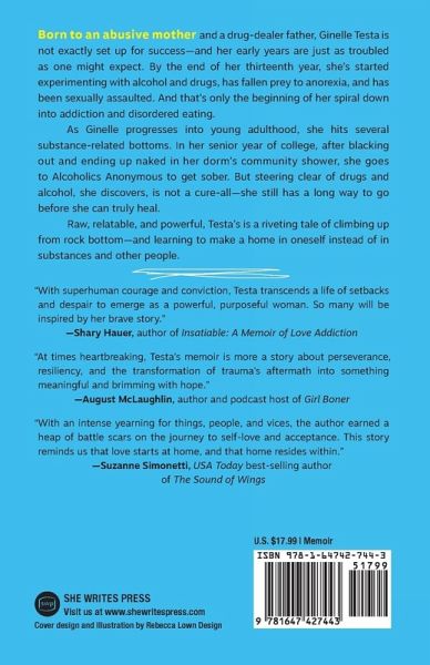 Born to an abusive mother and a drug-dealer father, Ginelle Testa is not exactly set up for success-and her early years are just as troubled as one might expect. By the end of her thirteenth year, she's started experimenting with alcohol and drugs, has fallen prey to anorexia, and has been sexually assaulted. And that's only the beginning of her spiral down into addiction and disordered eating. As Ginelle progresses into young adulthood, she hits several substance-related bottoms. In her senior year of college, after blacking out and ending up naked in her dorm's community shower, she goes to Alcoholics Anonymous and gets sober. But steering clear of drugs and alcohol, she discovers, is not a cure-all-she still has a long way to go before she can truly heal. Raw, relatable, and powerful, Testa's is a riveting tale of climbing up from rock bottom-and learning to make a home in oneself instead of in substances and other people.