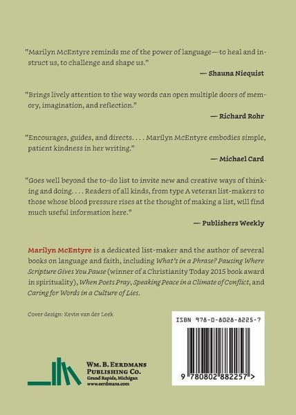 What if writing a list could literally change your life? From the ancient book of Numbers to the latest clickbait listicle, list-writing has been a routine feature of human experience. Shopping lists. To-do lists. Guest lists. Bucket lists. Lists are everywhere you look. But what if our lists did more than just remind us to buy milk and take out the trash? What if the practice of list-making could help us discover who we truly are and even point us to our deepest joys, hopes, and desires? In Make a List teacher, writer, and wordsmith Marilyn McEntyre shows readers how the simple act of writing a list can open doors to personal discovery and spiritual growth. Deepening her reflections with abundant writing prompts and real-life examples, McEntyre turns the humble list into a work of art—one that has the power to clear minds, open hearts, and change lives.