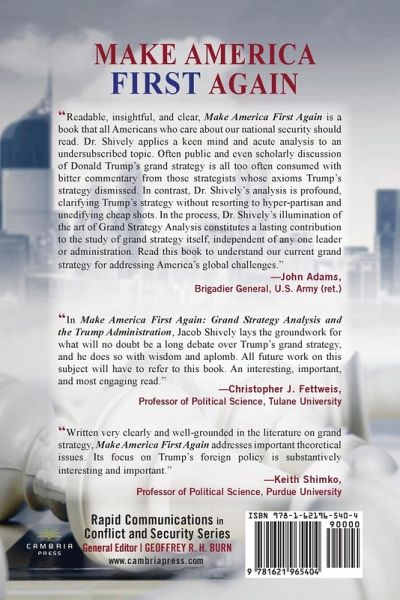 *This book is in the Rapid Communications in Conflict and Security (RCCS) Series (General Editor: Geoffrey R.H. Burn). This book examines US grand strategy between two moments, the 2016 presidential election and the 2018 midterm election. It is an early history and an assessment of the Trump administration’s grand strategy, but it is also a study of much larger questions. Like US presidents and other heads of government, Donald Trump provokes a wide range of debates. For grand strategy, the debates are familiar but profound: what exactly is the administration’s approach to the world and national security? In addition, can one administration or even one individual change a state’s grand strategy? Trump’s temperament is notoriously public. Is it also uniquely influential? Perhaps Trump the man fundamentally changed US grand strategy during this period. Or, perhaps, he and his administration were constrained by existing strategic commitments. To answer these questions, the following pages unfold the story of Trump’s early grand strategy. As a concept, grand strategy itself remains contested. Scholars disagree about whether such strategies are easily changed based upon one leader’s prerogatives. They also debate whether and to what degree grand strategies are, in fact, a set of ideas and practices whose direction—like that of an oil tanker in a narrow channel—is unlikely to change. To study this concept itself, the book applies an innovative "grand strategy analysis" framework. Scholars and professionals have traditionally talked past one another on this topic, yet their work is converging. This project draws these strands together, and it uses them to help us understand Trump’s grand strategy. It aims to learn whether Trump is indeed a true strategist. It seeks to determine whether one man alone can revise his government’s grand strategy. While some readers may disagree with the author’s final analyses, but hopefully they will find the claims unignorable, grand strategy analysis (GSA) a vital innovation, and the case history invaluable. To date, work on the Trump administration’s grand strategy, though extensive, has been journalistic, partial, or scattered. This book offers a more complete and systematic picture of Trump’s grand strategy over most of its first two years. For students, practitioners and scholars, such substantive, concrete work is foundational. The book also engages live and ongoing debates about how to characterize and assess grand strategy. Its grand strategy analysis proposal is an essential consideration for anyone studying or working in this field. Finally, the book sets the stage for ongoing debates. It offers insight for policy makers and a revised analytical framework for scholars.