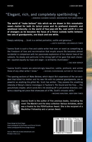When four-year-old Bo is orphaned in the car accident that kills his mother, he becomes the focus of a fierce custody struggle and flees into himself -- away from the sea of strangers -- where he inhabits an eerie inner landscape. The world of "make believe" into which we are drawn in this remarkable novel -- hailed for both its lyrical prose and its profound dramatic and emotional intensity -- is the world of four-year-old Bo, cast adrift in a sea of strangers as he becomes the focus of a fierce custody battle between two sets of grandparents, one black and one white. "This is a compelling story that will leave readers haunted by Scott's powerful moral vision."-Publishers' Weekly