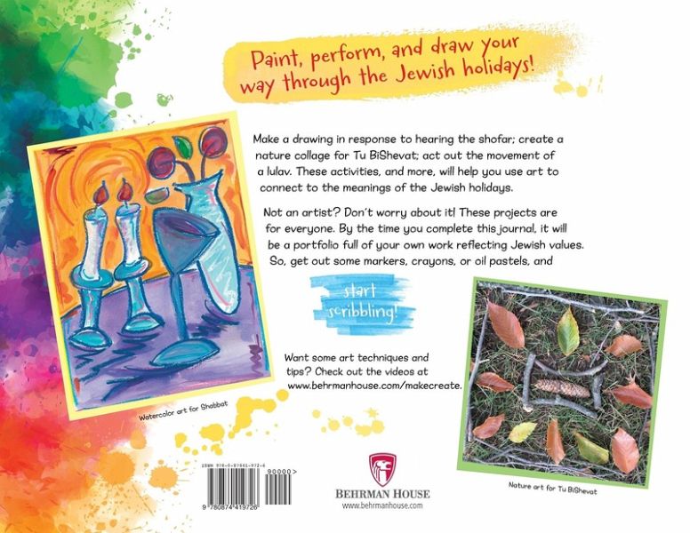 Paint, perform, and doodle your way through the Jewish holidays! Guide your students through a process of unlocking the meaning of each holiday and its values through artistic projects and concepts. Make a drawing in response to hearing the shofar; create a nature collage for Tu BiShevat; act out the movement of a lulav. Make, Create, Celebrate uses art as a way to help students connect with the underlying values of the holidays in a personal way, free from explaining the how-tos of each holiday. Not an artist? Don't worry about it! These projects are about self-expression and ideas, and therefore, are for everyone. By the time students have compelte the holiday cycle, they will have created a portfolio full of their own work reflecting Jewish values. SPECIAL FEATURES: * Gallery Tour: More than 15 beautiful, full-color images of contemporary and historical artworks with accompanying reflection questions. * About Art: Explanations of art techniques * Good to Know: Fun facts about the holidays * Think About: Prompts and thoughtful questions that help learners apply their art experiences to the Jewish holidays * Artist Statements: Space for students to write and reflect about their own work * Peer Reviews: Opportunities for students to share their work with friends, and give and receive feedback. * Video Links: Links to online, original videos by the author, Julie Wohl, that demonstrate activities within the source.
