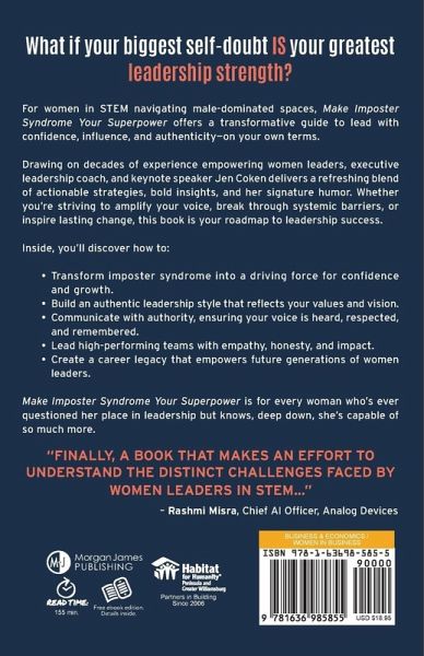 Make Imposter Syndrome Your Superpower helps women in STEM show up more fully in their career, authentically step into their next level of leadership, and leap after those big, hairy, audacious goals.Too often women in positions of leadership within STEM fields feel like a square peg in a round hole whittling away their edges trying to fit in. Make Imposter Syndrome Your Superpower encourages them to own their power and recognize that they already have what it takes to be effective and impactful leaders within the male-dominated industries they're already shaping.Leaning on her decades of experience as a coach for executive women, her expertise in imposter syndrome, and her legacy leadership framework, author Jen Coken blends insight with application in helping women in STEM move from being hidden leaders to ones with more authority, influence, and impact-all starting with embracing their limiting beliefs and self-doubt.This insightful guidebook will help women in STEM step into leadership in a values-aligned and authentic way—disregarding the tired, old examples of what leadership "should" be. They will learn to recognize the defining moment that created their version of imposter syndrome and come to understand, accept, and be grateful for the ways imposter syndrome has helped them along their journey. Make Imposter Syndrome Your Superpower is a transformative handbook for women in STEM, empowering them to build unshakable self-confidence, enhance team dynamics, and influence company culture.