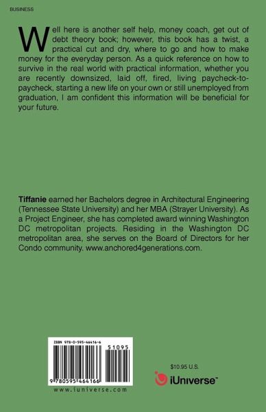 Well here is another self help, money coach, get out of debt theory book; however, this book has a twist, a practical cut and dry, where to go and how to make money for the everyday person. As a quick reference on how to survive in the real world with practical information, whether you are recently downsized, laid off, fired, living paycheck-to-paycheck, starting a new life on your own or still unemployed from graduation, I am confident this information will be beneficial for your future.