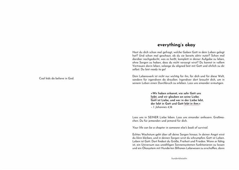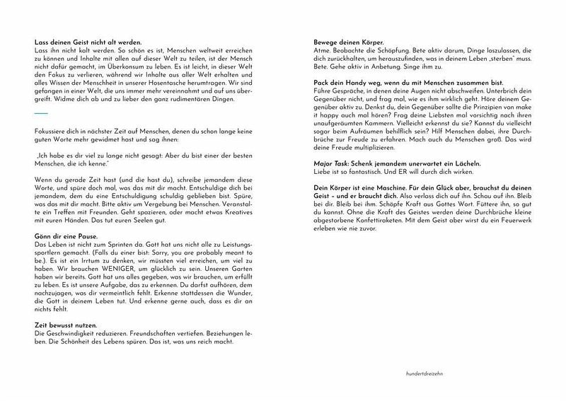 Das fand ich sehr gut. Man spürt der Autorin ihre tiefe Beziehung zu unserem Gott ab auch ihre Kämpfe und ihr Anliegen zu dieser tiefen Freude, die Gott für uns hat, hinzuführen.