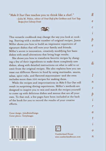 Make It Your Own: Recipes and Inspiration for the Creative Cook"" is a new kind of cookbook. Written for those who love to create unique, exciting meals for family and friends, it is filled with wildly flavorful recipes that boldly combine tastes from the world over. It accomplishes this in exciting new ways that inspire a sense of adventure in cooking. Each recipe is followed by a minimum of two variations?Classic Combos and Daring Pairings?that show the reader how a few minor changes to a recipe can result in a completely new dish. For instance, the author's prize-winning Spice Dusted Salmon with Curried Orange-Apricot Sauce is paired as a classic combo with Mustard Seed Salmon with Lemon-Dill Aioli.""