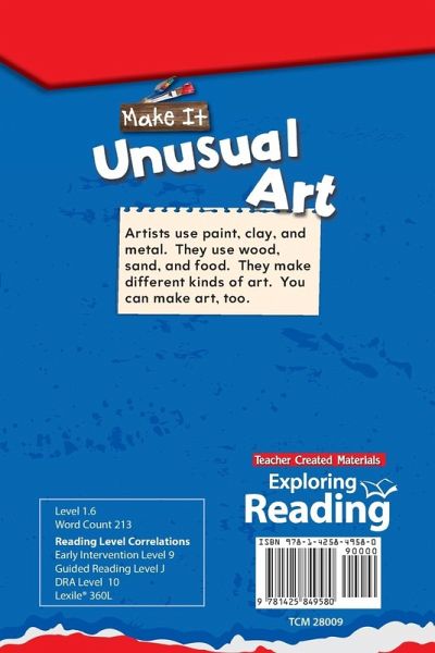 Artists use paint, clay, metal, wood, sand, and even food to create different kinds of art. You can use similar items to make art, too! Introduce students to basic concepts with this book that will engage students in learning as they develop their comprehension and literacy skills. Featuring exciting TIME For Kids content, this full-color book will keep students reading from cover to cover. Aligned to state and national standards, this text introduces students to simple informational text features including a glossary, vocabulary list, and bold font.