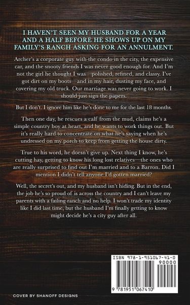 Have you ever gotten married without telling anyone? I did. Not telling anyone was the easy part. I had moved to a big city, had no friends, and wasn't speaking to my family. I tried the whole "fake it 'til you make it" thing. I was the "fake" part and my husband, Archer, was concerned only with the "making it" part. When I got a call about a family emergency, I walked out on my hot-in-a-suit ambitious husband and my superficial life and ran back home to the family ranch. And I stayed, ignoring my husband's attempts to reach me-and I still didn't tell anyone I was married. Then a year and a half later, I found Archer standing on my property, looking like a titanium rod in a pile of rusty nails. He came to end things but ended up staying to learn who he really married-the shy corporate woman with a perfect blowout or the sarcastic country girl with mud on her boots. The longer he's around, the more I see I wasn't the only one who was disingenuous. The suit is gone, and my city slicker spouse is fixing fence, diving into muddy stock ponds to save calves, and calling in favors to get the cattle enough hay for the winter. Yet none of that changes that my family needs me, and I'm not abandoning them again. It doesn't change the fact that the career Archer worked so hard to build is over a thousand miles away in Texas. Or that the life I want is exactly what he's run from. The only thing we're doing is making it harder to sign the divorce papers.