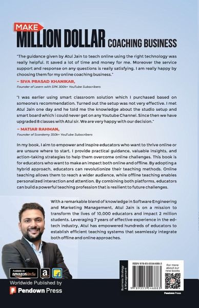 In my book, I aim to empower and inspire educators who want to thrive online or are unsure where to start. I provide practical guidance, valuable insights, and action-taking strategies to help them overcome online challenges. This book is for educators who want to make an impact both online and offline. By adopting a hybrid approach, educators can revolutionize their teaching methods. Online teaching allows them to reach a wider audience, while offline teaching enables personalized interaction and attention. By combining both platforms, educators can build a powerful teaching profession that is resilient to future challenges."With a remarkable blend of knowledge in Software Engineering and Marketing Management, Atul Jain is on a mission to transform the lives of 10,000 educators and impact 2 million students. Leveraging 7 years of effective experience in the edtech industry, Atul has empowered hundreds of educators to establish efficient teaching systems that seamlessly integrate both offline and online approaches."