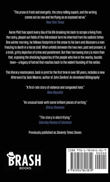 "The prose is fresh and energetic, the story-telling superb, and the writing comes out as raw and terrifying as an exposed nerve." New York Times Aaron Platt has spent every day of his life breaking his back to scrape a living from the rocky, played-out fields of the Adirondack farm he inherited from his sadistic father. One winter morning, he follows footprints in the snow to his barn and discovers a man freezing to death in a horse stall. What unfolds between the two men, past and present, is a brisk, gritty depiction of crime and punishment. But their harrowing story is more than that, exposing the shocking hypocrisy of the people who live in the nearby, bucolic town-a legacy of hatred that reaches back to the violent founding of the nation. This literary masterpiece, back in print for the first time in over 60 years, includes a new Afterword by Jack Mearns, author of John Sanford: An Annotated Bibliography "A first-rate story of violence and congealed hate." New Republic "The story is electrifying." Saturday Review of Literature "A brief, fast book, and those pages are terse. Sanford has injected the drama of spilled blood that made America." Los Angeles Times "An unusual book with some brilliant pieces of writing, exceeding Celine and Faulkner in depravity and language." Kirkus Reviews