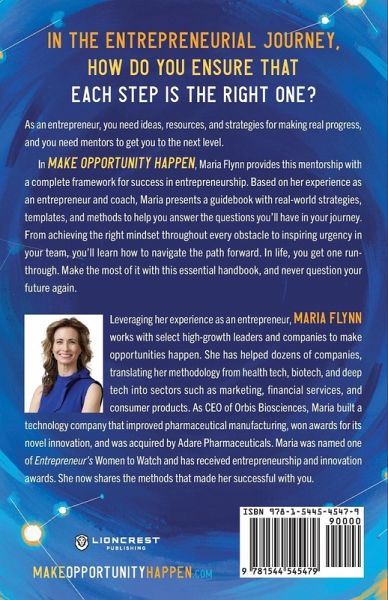 In the entrepreneurial journey, how do you ensure that each step is the right one? As an entrepreneur, you need ideas, resources, and strategies for making real progress-and you need mentors to get you to the next level. In Make Opportunity Happen, Maria Flynn provides this mentorship with a complete framework for success in entrepreneurship. Based on her experience as an entrepreneur and coach, Maria presents a guidebook with real-world strategies, templates, and methods to help you answer the questions you'll have in your journey. From achieving the right mindset throughout every obstacle to inspiring urgency in your team, you'll learn how to navigate the path forward. In life, you get one run-through. Make the most of it with this essential handbook, and never question your future again.