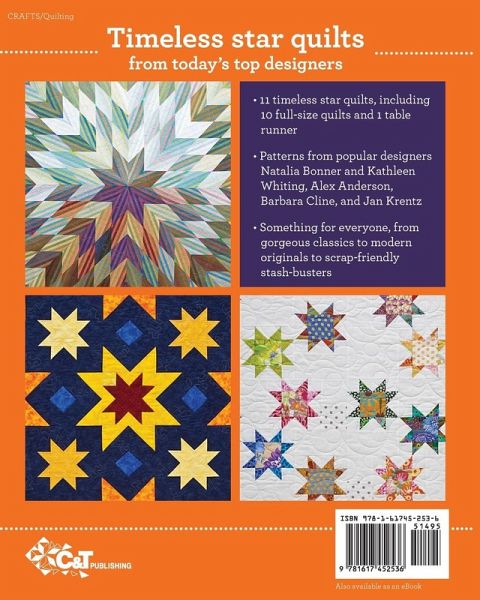 Star blocks are perennial favorites among quilters, and now you can have the very best at your fingertips. Popular quiltmakers Alex Anderson, Natalia Bonner and Kathleen Whiting, Barbara Cline, and Jan Krentz present timeless designs ranging from classic to modern, including scrap-friendly designs to bust your stash. With 10 star quilts and 1 table runner in a value-packed booklet, you'll be ready to make some classics of your own!