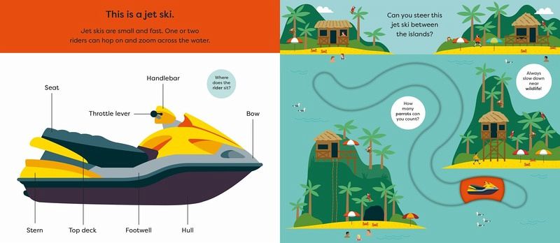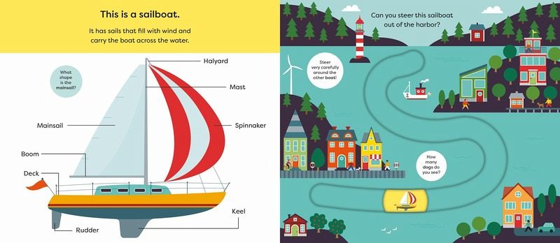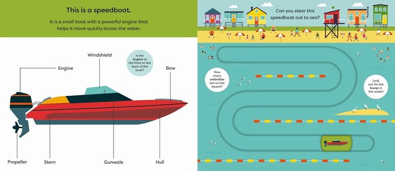 Discover things that go in this chunky new Make Tracks board book, and trace each vehicle's path along a new waterway In this interactive series with easy-to-use, durable sliders, your toddler can steer a sailboat, a speedboat, a jet ski, and a fishing boat! Perfect for helping toddlers develop hand-eye coordination, while also encouraging interaction with simple maritime-themed first words, clear diagrams, and helpful discussion prompts to learn through play. The perfect book for children who love fishing boats and speedboats-and being in the driver's seat!