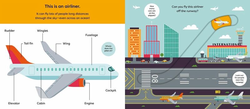 Discover things that fly in this chunky new Make Tracks board book, and trace each vehicle’s path through the sky. In this interactive series with easy-to-use, durable sliders, your toddler can operate an airplane, a hot-air balloon, a helicopter, and a spaceship! Perfect for helping toddlers develop hand-eye coordination, while also encouraging interaction with simple sky—themed first words, clear diagrams, and helpful text prompts to learn through play. The perfect book for children who love airplanes and helicopters—and being in the cockpit! Other titles in the series include: * Make Tracks: Cars * Make Tracks: Trains * Make Tracks: Trucks * And more!