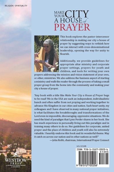 This book explores the pastor-intercessor relationship in making our city a house of prayer by suggesting ways to rethink how we can interact with cross-denominational leadership, opening the way for unity to flourish. Additionally, we provide guidelines for appropriate altar ministry and corporate prayer settings, prayers for youth and children, and tools for writing your own prayers addressing the mission and vision statement of your own, or other, ministries. We also address the business aspect of starting a ministry and walk the reader through the process of taking a small prayer group from the home into the community and making your city a house of prayer. "Any book with a title like Make Your City a House of Prayer begs to be read! We in the USA are such an independent, individualistic bunch and often suffer from not praying and working together to advance His Kingdom in our cities and nation. Such heart unity, my colleagues and I have observed in many national prayer initiatives, is what facilitates the breakthroughs and transformations of the Lord even in impossible, discouraging, oppressive situations. We do need the kind of paradigm that Lynn Ferder shares in her book. She has much experience in personally living out this paradigm and in training many others to do so. Her guidelines for corporate, united prayer and the place of children and youth will also be extremely valuable. I heartily endorse this book and its wonderful theme. May it catch on across our nation and in other nations as well!" -John Robb, chairman, International Prayer Connect
