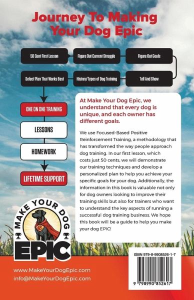 At Make Your Dog Epic, we understand that every dog is unique, and each owner has different goals. We use Focused-Based Positive Reinforcement Training, a methodology that has transformed the way people approach dog training. In our first lesson, which costs just 50 cents, we will demonstrate our training techniques and develop a personalized plan to help you achieve your specific goals for your dog. Additionally, the information in this book is valuable not only for dog owners looking to improve their training skills but also for trainers who want to understand the key aspects of running a successful dog training business. We hope this book will be a guide to help you make your dog EPIC!