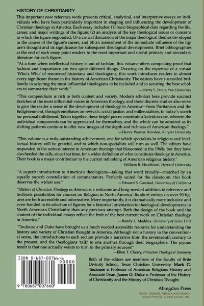 Presents critical, analytical, and interpretive essays on individuals who have been particularly important in shaping and influencing the development of Christian theology in America.