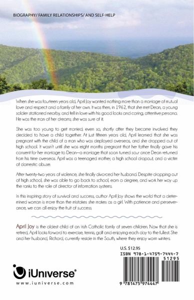 When she was fourteen years old, April Joy wanted nothing more than a marriage of mutual love and respect and a family of her own. It was then, in 1962, that she met Dean, a young soldier stationed nearby, and fell in love with his good looks and caring, attentive persona. He was the man of her dreams; she was sure of it. She was too young to get married; even so, shortly after they became involved they decided to have a child together. At just fi fteen years old, April learned that she was pregnant with the child of a man who was deployed overseas, and she dropped out of high school. It wasn't until she was eight months pregnant that her father finally gave his consent for her marriage to Dean-a marriage that soon turned sour once Dean returned from his time overseas. April was a teenaged mother, a high school dropout, and a victim of domestic abuse. After twenty-two years of violence, she finally divorced her husband. Despite dropping out of high school, she was able to go back to school, earn a degree, and work her way up the ranks to the role of director of information systems. In this inspiring story of survival and success, author April Joy shows the world that a determined woman is more than the mistakes she makes as a girl. With patience and perseverance, we can all enjoy the fruit of success.