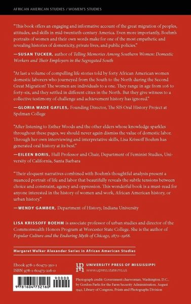 Shared memories from the hard-working southern women who relocated to northern cities and birthed the black middle class The Second Great Migration, the movement of African Americans between the South and the North that began in the early 1940s and tapered off in the late 1960s, transformed America. This migration of approximately five million people helped improve the financial prospects of black Americans, who, in the next generation, moved increasingly into the middle class. Over seven years, Lisa Krissoff Boehm gathered oral histories with women migrants and their children, two groups largely overlooked in the story of this event. She also utilized existing oral histories with migrants and southerners in leading archives. In extended excerpts from the oral histories, and in thoughtful scholarly analysis of the voices, this book offers a unique window into African American women's history. These rich oral histories reveal much that is surprising. Although the Jim Crow South presented persistent dangers, the women retained warm memories of southern childhoods. Notwithstanding the burgeoning war industry, most women found themselves left out of industrial work. The North offered its own institutionalized racism; the region was not the promised land. Additionally, these African American women juggled work and family long before such battles became a staple of mainstream discussion. In the face of challenges, the women who share their tales here crafted lives of great meaning from the limited options available, making a way out of no way. Lisa Krissoff Boehm is associate professor of urban studies and director of the Commonwealth Honors Program at Worcester State College. She is the author of Popular Culture and the Enduring Myth of Chicago.