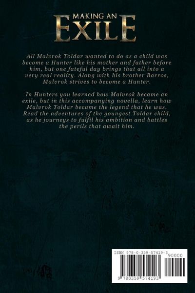 All Malvrok Toldar wanted to do as a child was become a Hunter like his mother and father before him, but one fateful day brings that all into a very real reality. Along with his brother Barros, Malvrok strives to become a Hunter. In Hunters you learned how Malvrok became an exile, but in this accompanying novella, learn how Malvrok Toldar became the legend that he was. Read the adventures of the youngest Toldar child, as he journeys to fulfil his ambition and battles the perils that await him.
