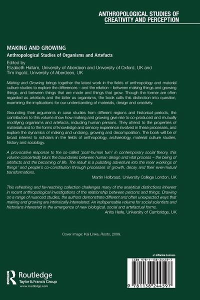 Making and Growing brings together the latest work in the fields of anthropology and material culture studies to explore the differences - and the relation - between making things and growing things, and between things that are made and things that grow. Though the former are often regarded as artefacts and the latter as organisms, the book calls this distinction into question, examining the implications for our understanding of materials, design and creativity. Grounding their arguments in case studies from different regions and historical periods, the contributors to this volume show how making and growing give rise to co-produced and mutually modifying organisms and artefacts, including human persons. They attend to the properties of materials and to the forms of knowledge and sensory experience involved in these processes, and explore the dynamics of making and undoing, growing and decomposition. The book will be of broad interest to scholars in the fields of anthropology, archaeology, material culture studies, history and sociology.