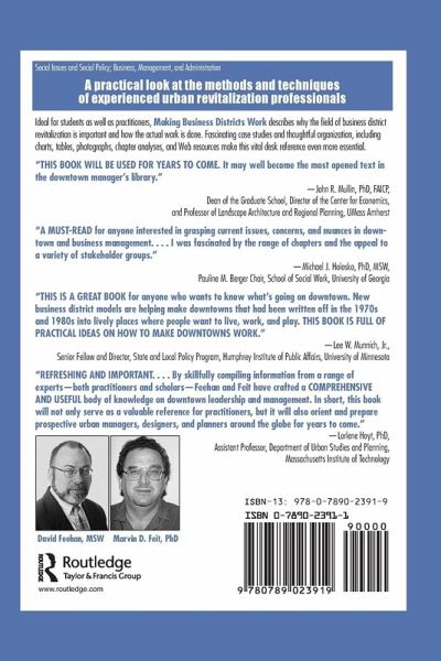 Making Business Districts Work is a practical look at the methods and techniques used by some of the most experienced professionals in the urban revitalization field. Ideal for students as well as practitioners, this book describes why the field of business district revitalization is important, and how the actual work is done. Fascinating case studies and thoughtful organization, including charts, tables, photographs, chapter analyses, and Web resources make this vital desk reference even more essential.