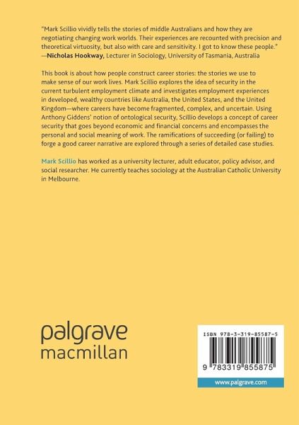 This book is about how people construct career stories: the stories we use to make sense of our work life. Mark Scillio explores the idea of security in the current turbulent employment climate, investigating employment experiences in developed, wealthy countries like Australia, the United States, and the United Kingdom-where careers have become fragmented, complex, and uncertain. Using Anthony Giddens' notion of ontological security, Scillio develops a concept of career security that goes beyond economic and financial concerns and encompasses the personal and social meaning of work. The ramifications of succeeding (or failing) to forge a good career narrative are explored through a series of detailed case studies.