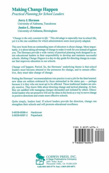 This is a book about change, leaders and a wide variety of practical planning tools designed to assist educational leaders in their responsibility to develop and maintain successful schools. It is designed to be used as a day-to-day reference book for those who are responsible for the direct change that improves the operations and output of their schools. The aim of this book is to help leaders become more knowledgeable and proactive, thus ensuring that all the changes will move in positive directions towards effective schools.