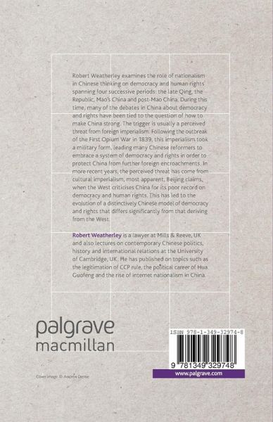 Robert Weatherley argues that Chinese perceptions of democracy and human rights have been heavily influenced by the pressing issue of how to make China strong in the face of a perceived threat posed by foreign imperialism, be it military imperialism during the previous two centuries and cultural imperialism in more recent decades.
