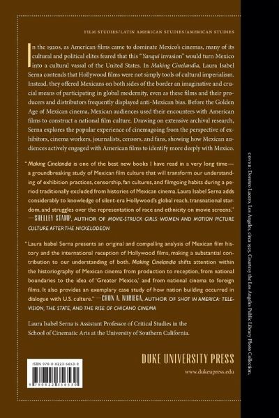 In the 1920s, as American films came to dominate Mexico's cinemas, many of its cultural and political elites feared that this "Yanqui invasion" would turn Mexico into a cultural vassal of the United States. In Making Cinelandia, Laura Isabel Serna contends that Hollywood films were not simply tools of cultural imperialism. Instead, they offered Mexicans on both sides of the border an imaginative and crucial means of participating in global modernity, even as these films and their producers and distributors frequently displayed anti-Mexican bias. Before the Golden Age of Mexican cinema, Mexican audiences used their encounters with American films to construct a national film culture. Drawing on extensive archival research, Serna explores the popular experience of cinemagoing from the perspective of exhibitors, cinema workers, journalists, censors, and fans, showing how Mexican audiences actively engaged with American films to identify more deeply with Mexico.