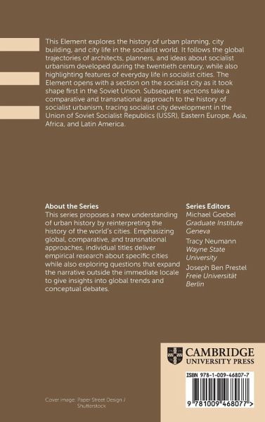 This Element explores the history of urban planning, city building, and city life in the socialist world. It follows the global trajectories of architects, planners, and ideas about socialist urbanism developed during the twentieth century.