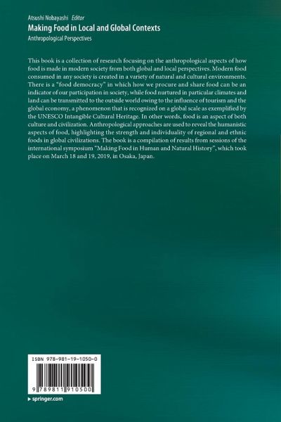 This book is a collection of research focusing on the anthropological aspects of how food is made in modern society from both global and local perspectives. Modern food consumed in any society is created in a variety of natural and cultural environments. There is a "food democracy" in which how we procure and share food can be an indicator of our participation in society, while food nurtured in particular climates and land can be transmitted to the outside world owing to the influence of tourism and the global economy, a phenomenon that is recognized on a global scale as exemplified by the UNESCO Intangible Cultural Heritage. In other words, food is an aspect of both culture and civilization. Anthropological approaches are used to reveal the humanistic aspects of food, highlighting the strength and individuality of regional and ethnic foods in global civilizations. The book is a compilation of results from sessions of the international symposium "Making Food in Human and Natural History", which took place on March 18 and 19, 2019, in Osaka, Japan.