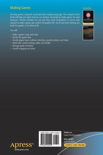 Develop games using the JavaScript web scripting language. This compact short book will help you learn how to use modern JavaScript to make games for web browsers. They're effortless to use and they work everywhere. If you've ever wanted to make a game, join author Christopher Pitt. You'll start with nothing and build fun games, in no time at all.