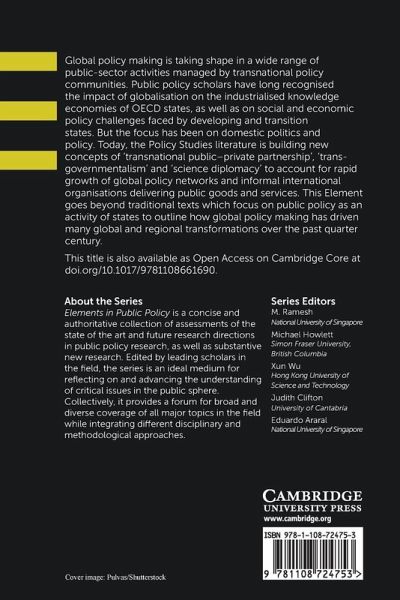 This Element goes beyond traditional texts which focus on public policy as an activity of states to outline how global policy making has driven many global and regional transformations over the past quarter-century. This title is also available as Open Access on Cambridge Core.