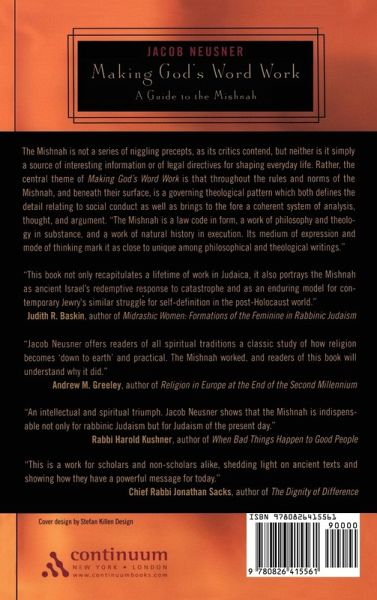The central theme of Making Gods Word Work is that, throughout the rules and norms of the Mishnah, and beneath their surface, is a governing theological pattern which defines the detail relating to social conduct and brings to the fore a coherent system of analysis, thought, and argument.