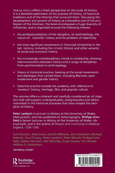 Making History offers a fresh perspective on the study of the past. It is an exhaustive exploration of the practice of history, historical traditions and the theories that surround them. Discussing the development and growth of history as a discipline and of the profession of the historian, the book encompasses a huge diversity of influences, organized around the following themes: the professionalization of the discipline the most significant movements in historical scholarship in the last century, including the Annales School the increasing interdisciplinary trends in scholarship theory in historical practice including Marxism, post-modernism and gender history historical practice outside the academy. The volume offers a coherent set of chapters to support undergraduates, postgraduates and others interested in the historical processes that have shaped the discipline of history.