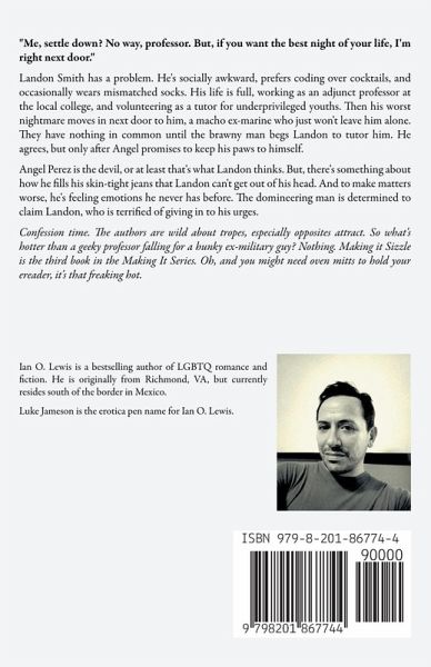 "Me, settle down? No way, professor. But, if you want the best night of your life, I'm right next door." Landon Smith has a problem. He's socially awkward, prefers coding over cocktails, and occasionally wears mismatched socks. His life is full, working as an adjunct professor at the local college, and volunteering as a tutor for underprivileged youths. Then his worst nightmare moves in next door to him, a macho ex-marine who just won't leave him alone. They have nothing in common until the brawny man begs Landon to tutor him. He agrees, but only after Angel promises to keep his paws to himself. Angel Perez is the devil, or at least that's what Landon thinks. But, there's something about how he fills his skin-tight jeans that Landon can't get out of his head. And to make matters worse, he's feeling emotions he never has before. The domineering man is determined to claim Landon, who is terrified of giving in to his urges. Confession time. The authors are wild about tropes, especially opposites attract. So what's hotter than a geeky professor falling for a hunky ex-military guy? Nothing. Making it Sizzle is the third book in the Making It Series. Oh, and you might need oven mitts to hold your ereader, it's that freaking hot.