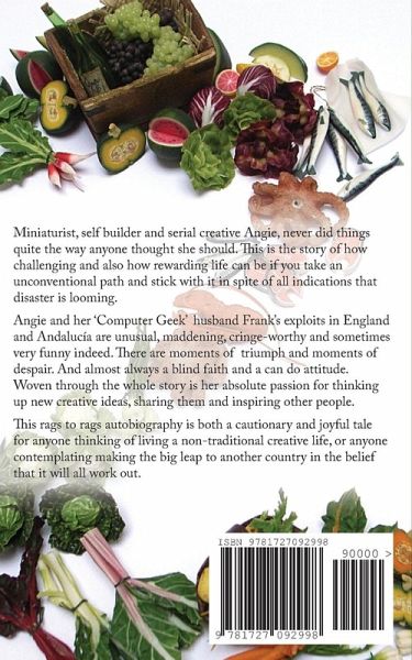 Miniaturist, self builder and serial creative Angie, never did things quite the way anyone thought she should. This is the story of how challenging and also how rewarding life can be if you take an unconventional path and stick with it in spite of all indications that disaster is looming. Angie and her ‘Computer Geek’ husband Frank’s exploits in England and Andalucía are unusual, maddening, cringe-worthy and sometimes very funny indeed. There are moments of triumph and moments of despair. And almost always a blind faith and a can do attitude. Woven through the whole story is her absolute passion for thinking up new creative ideas, sharing them and inspiring other people. This rags to rags autobiography is both a cautionary and joyful tale for anyone thinking of living a non-traditional creative life, or anyone contemplating making the big leap to another country in the belief that it will all work out.