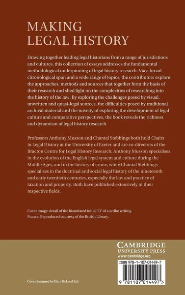 Introduction Anthony Musson and Chantal Stebbings; Foreword: reflections on 'doing' legal history Sir John Baker; 1. Editing law reports and doing legal history: compatible or incompatible projects Paul Brand; 2. The indispensability of manuscript case notes to eighteenth-century barristers and judges James Oldham; 3. Judging the judges: the reputations of nineteenth century judges and their sources Patrick Polden; 4. Benefits and barriers: the making of Victorian legal history Chantal Stebbings; 5. The historical turn in late nineteenth-century American legal thought David M. Rabban; 6. The methodological debates in German speaking Europe (1960-90) Marcel Senn; 7. Exploring the minds of lawyers: the duty of the legal historian to write the books of non-written law Dirk Heirbaut; 8. Comparative legal history: a methodology David Ibbetson; 9. 'They put to the torture all the ancient monuments': reflections on making eighteenth-century Irish legal history Sean Donlan; 10. The politics of historiography and the taxonomies of the colonial past: law, history and the tribes Paul McHugh; 11. Lay legal history Wilf Prest; 12. Antiquarianism and legal history Michael Stuckey; 13. Re-examining King John and Magna Carta: reflections on reasons, methodology and methods Jane Frecknall-Hughes; 14. Visual sources: mirror of justice or 'through a glass darkly'? Anthony Musson; 15. Sanctity, superstition and the death of Sarah Jacob Richard Ireland.