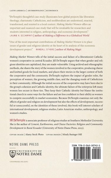 Making Market Women tells of the initial success and failure of a liberationist Catholic women's cooperative in central Ecuador. Jill DeTemple argues that when gender and religious identities are capitalized, they are made vulnerable. Using archival and ethnographic methods, she shares the story of the women involved in the cooperative, producing cheese and knitted goods for local markets, and places their stories in the larger context of both the cooperative and the community. DeTemple explores the impact of gender roles, the perception of women, the growing middle class, and the changing mode of Catholicism in their community. Although the initial success of the cooperative may have been due to the group's cohesion and Catholic identity, the ultimate failure of the enterprise left many women less secure in these ties. They keep their Catholic identity but blame the institutional church in some ways for the failure and are less confident in their ability as women to compete successfully in market economies. Because DeTemple examines not only the effects of gender and religion on development but also the effects of development, successful or unsuccessful, on the identities of those involved, this book will interest scholars of international development, religious studies, Latin American studies, anthropology, and women's studies.