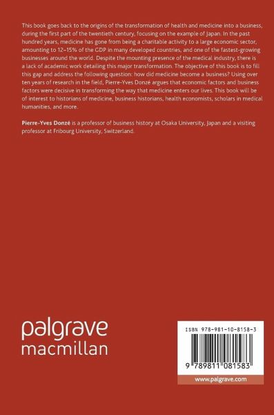 This book goes back to the origins of the transformation of health and medicine into a business, during the first part of the twentieth century, focusing on the example of Japan. In the past hundred years, medicine has gone from being a charitable activity to a large economic sector, amounting to 12-15% of the GDP in many developed countries, and one of the fastest-growing businesses around the world. Despite the mounting presence of the medical industry, there is a lack of academic work detailing this major transformation. The objective of this book is to fill this gap and address the following question: how did medicine become a business? Using over ten years of research in the field, Pierre-Yves Donzé argues that economic factors and business factors were decisive in transforming the way that medicine enters our lives. This book will be of interest to historians of medicine, business historians, health economists, scholars in medical humanities, and more.