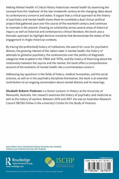 Making Mental Health: A Critical History historicises mental health by examining the concept from the 'madness' of the late nineteenth century to the changing ideas about its contemporary concerns and status. It argues that a critical approach to the history of psychiatry and mental health shows them to constitute a dual clinical-political project that gathered pace over the course of the twentieth century and continues to resonate in the present. Drawing on scholarship across several areas of historical inquiry as well as historical and contemporary clinical literature, the book uses a thematic approach to highlight decisive moments that demonstrate the stakes of this engagement in Anglo-American contexts.